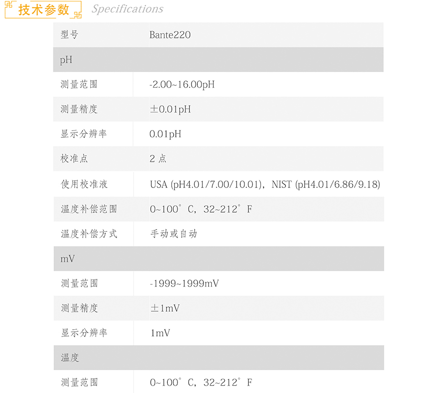 PH计,pH电极,温度探棒,pH标准缓冲液,电池及携带箱