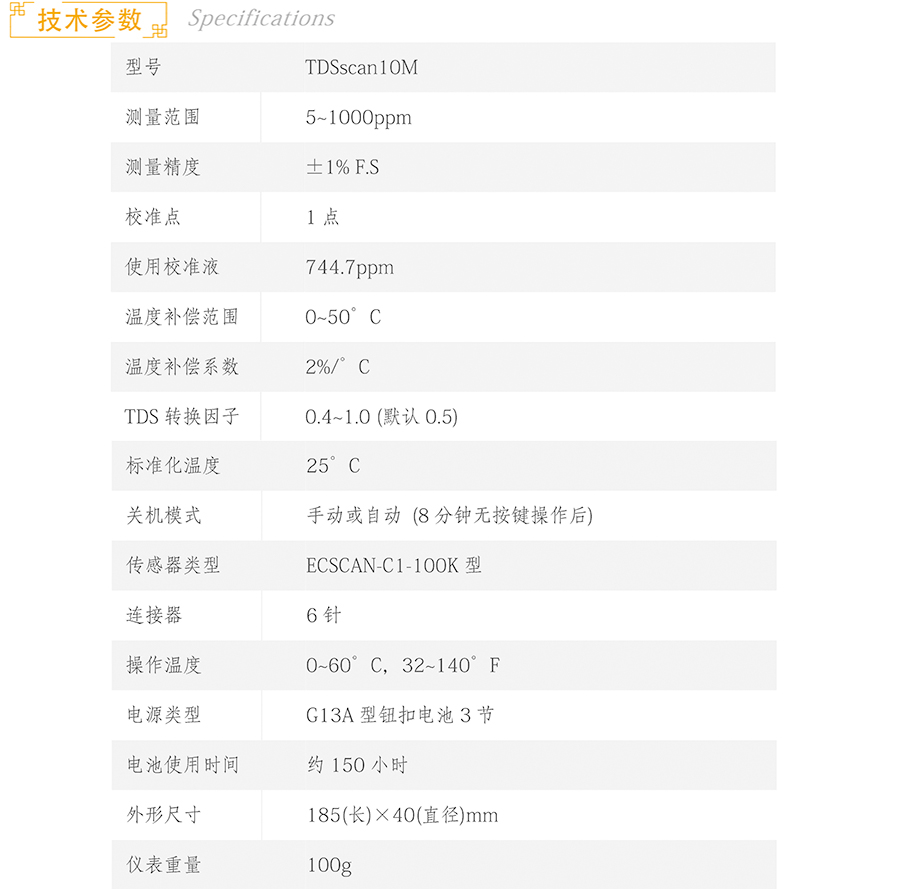 TDS计,TDS校准液 (744.7ppm) ,携带箱及电池