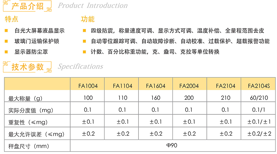 电子分析天平*1台;产品手册*1本;电源适配器*1个;校正砝码*5个
