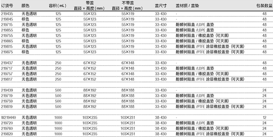 美国WHEATON 带刻度培养基瓶 硼硅玻璃 棕色 125ml 盖垫橡胶