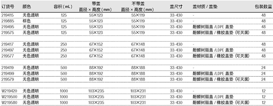 商品名称:美国WHEATON 无刻度培养基瓶 硼硅玻璃 无色透明 1000ml 无盖