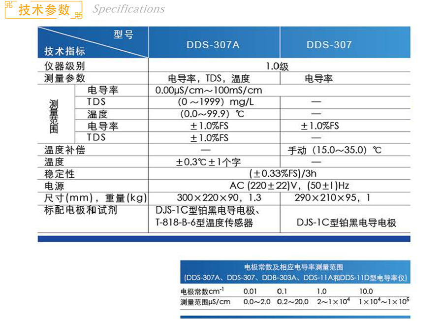 电导率仪、DJS-1C 型铂黑电导 电极、T-818-B-6 型 温度传感器