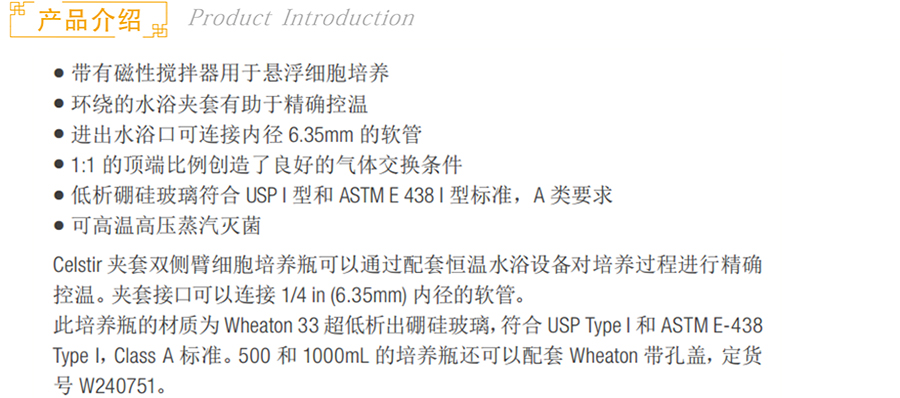 商品名称:WHEATON 夹套双侧臂细胞培养瓶 125ml
