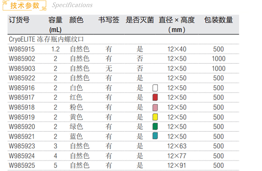 商品名称:WHEATON 冻存瓶 2mL 内旋盖 白色 带书写涂层 无菌