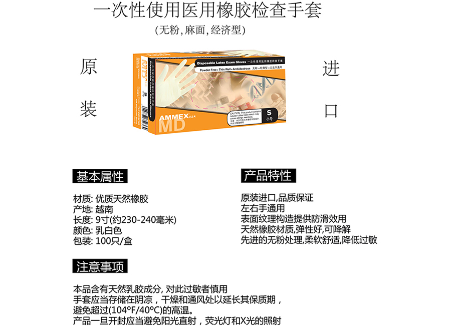 商品名称:爱马斯 一次性医用橡胶检查手套(经济型)100只/盒