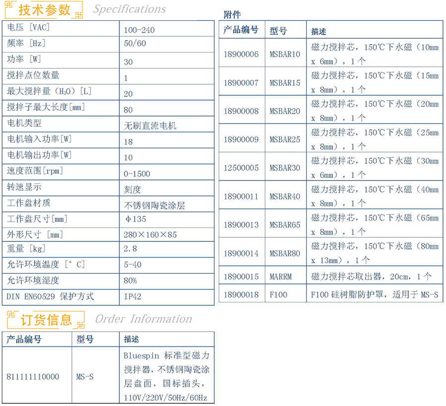 商品名称:北京大龙 MS-S Bluespin 标准型磁力搅拌器,不锈钢陶瓷涂层盘面,国标插头,110V/220V/50Hz/60Hz 最大搅拌量20L