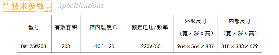 商品名称:澳柯玛 低温保存箱 DW-25W203 -25℃ 203L