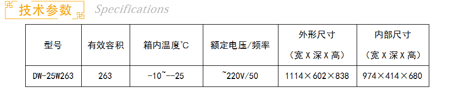 商品名称:澳柯玛 低温保存箱 DW-25W263 -25℃ 263L