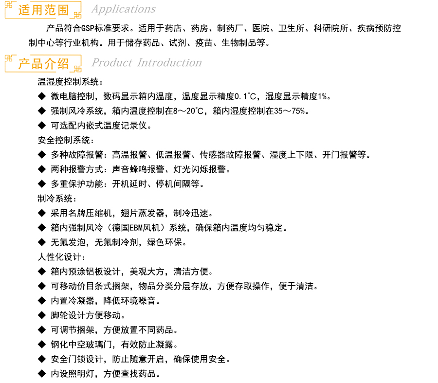 商品名称:澳柯玛 药品阴凉箱 YC-330Q 8~20℃ 330L