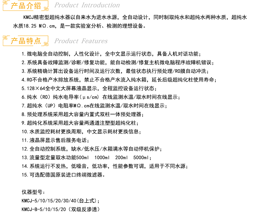 商品名称:成都浩纯 精密型超纯水 双级反渗透 台上式 KMCJ-B-10 10L/H