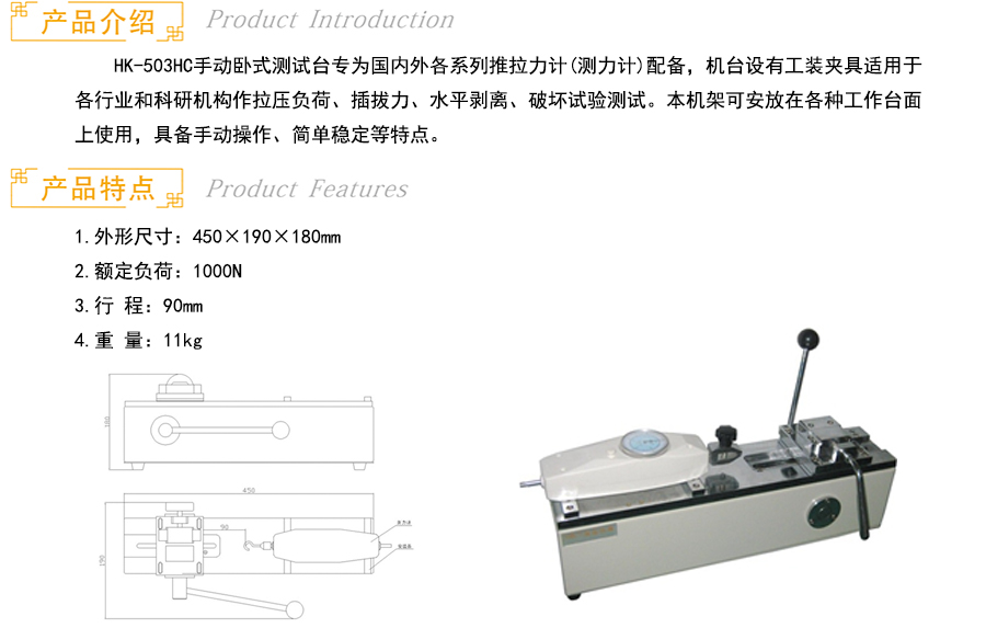 商品名称:常州蓝光 手动卧式测试台 HK503HC 适用指针和数显推拉力计