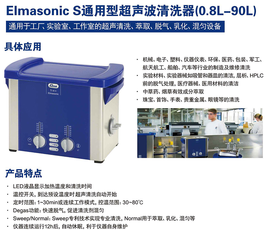 德国 Elmasonic S40 通用型超声波清洗器 LED液晶显示 温控开关 工作体积4.25L