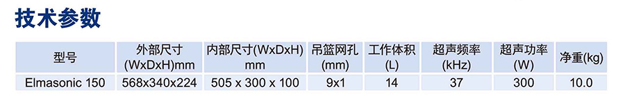 商品毛重:0.00kg 商品产地:德国 商品型号:Elmasonic S150 工作体积14L