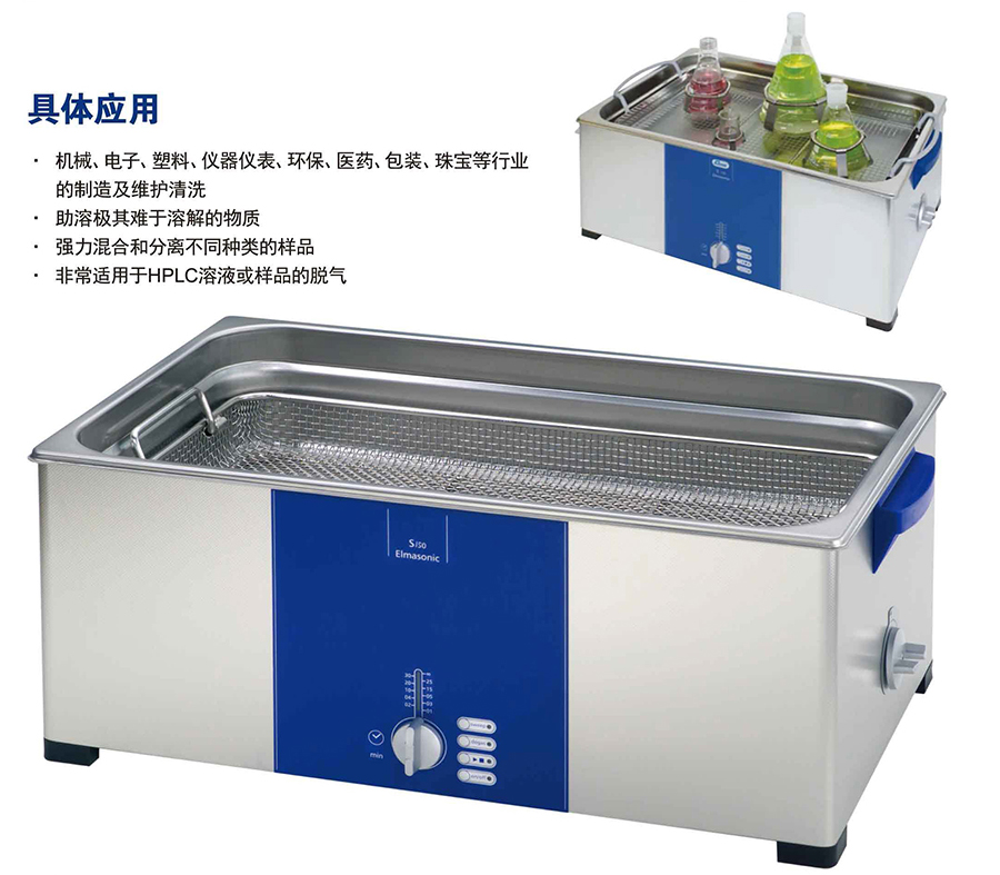 商品名称:德国 Elmasonic S150 平面型超声波清洗器 定时范围1-30min LED显示时间 工作体积14L 商品编号:10000243 上架时间:2016/6/6 0:00:00