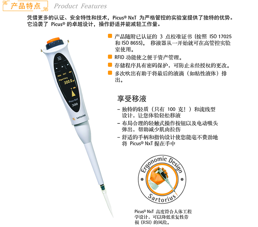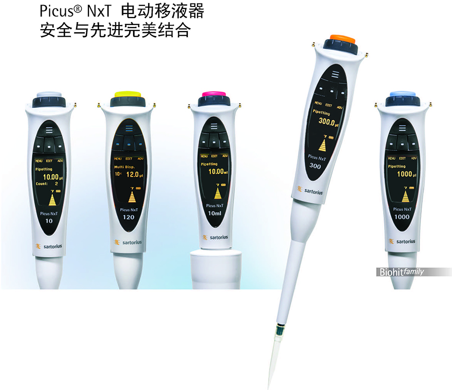 商品名称:赛多利斯 Picus® NxT 电动移液器 可调移液器 单道移液枪 加样器容量5-120μL