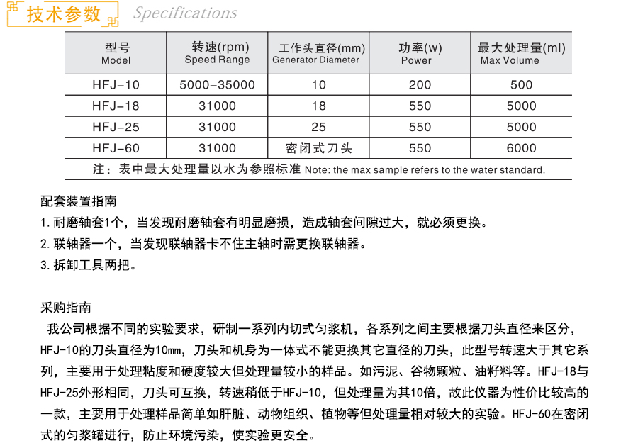 商品名称:天津恒奥 内切式均浆机(手持式) HFJ-10 35000rpm