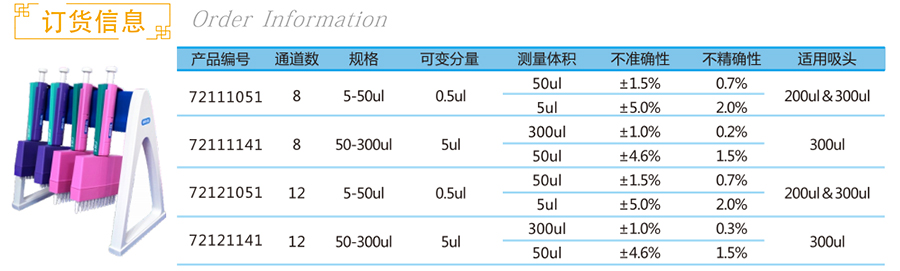 商品名称:宝予德 Colour彩色手动8道可调量程移液器(半支消毒)容量5-50ul