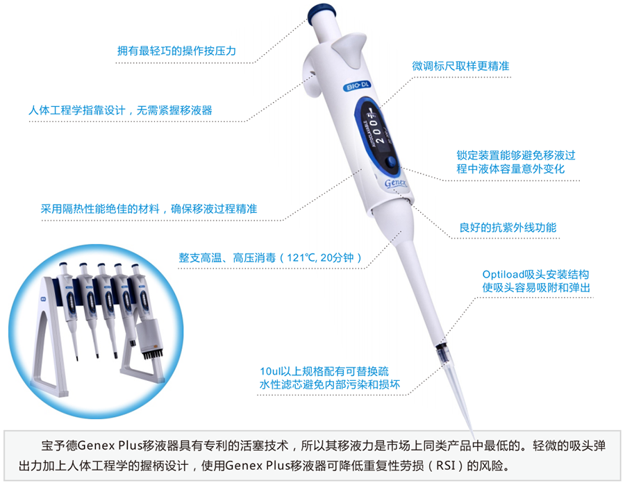 商品名称:宝予德 Genex Plus手动单道可变量程移液器(整支消毒)容量0.5-10ul
