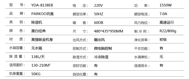 商品名称:百奥 金刚系列工业除湿机 金刚YDA-8138EB 微电脑控制