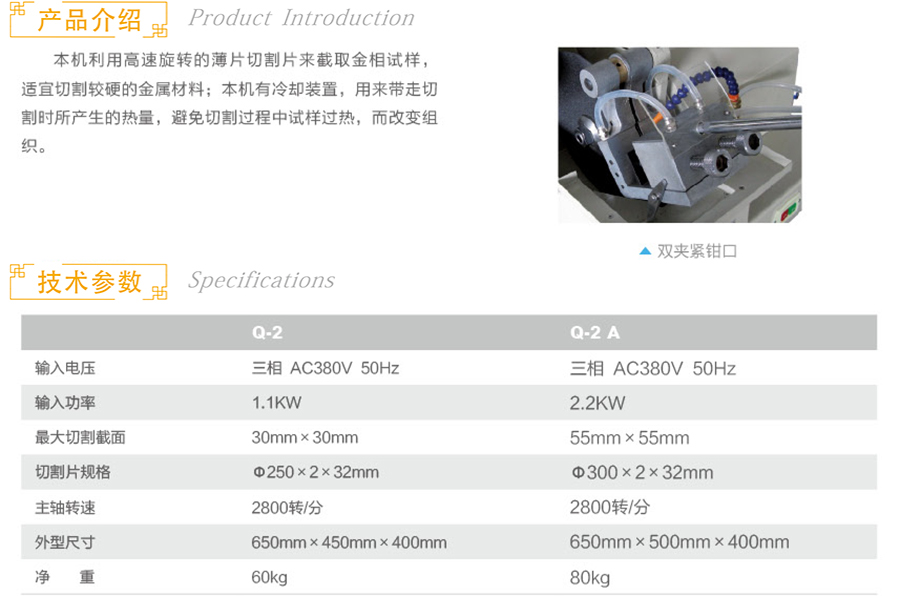 商品名称:莱州蔚仪 手动金相试样切割机 切割直径30mm Q-2
