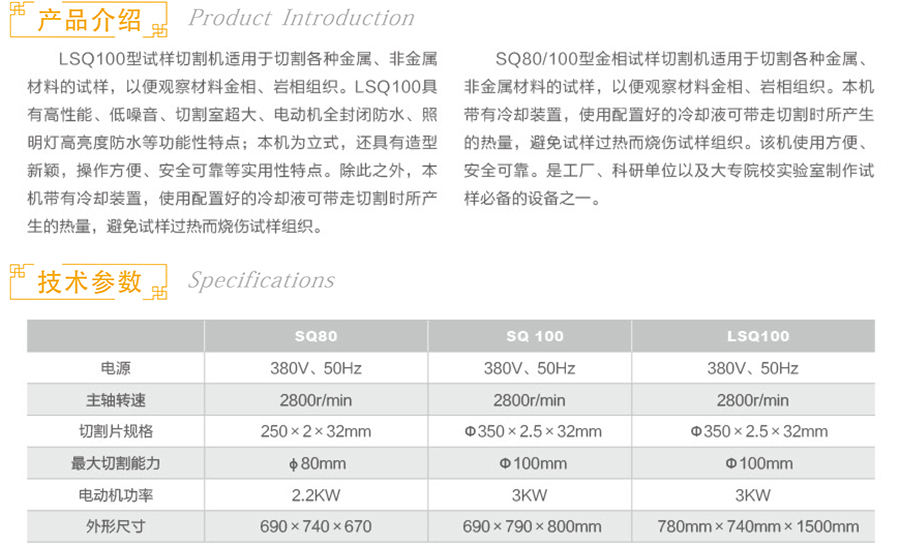 商品名称:莱州蔚仪 金相试样切割机 切割直径100mm SQ-100