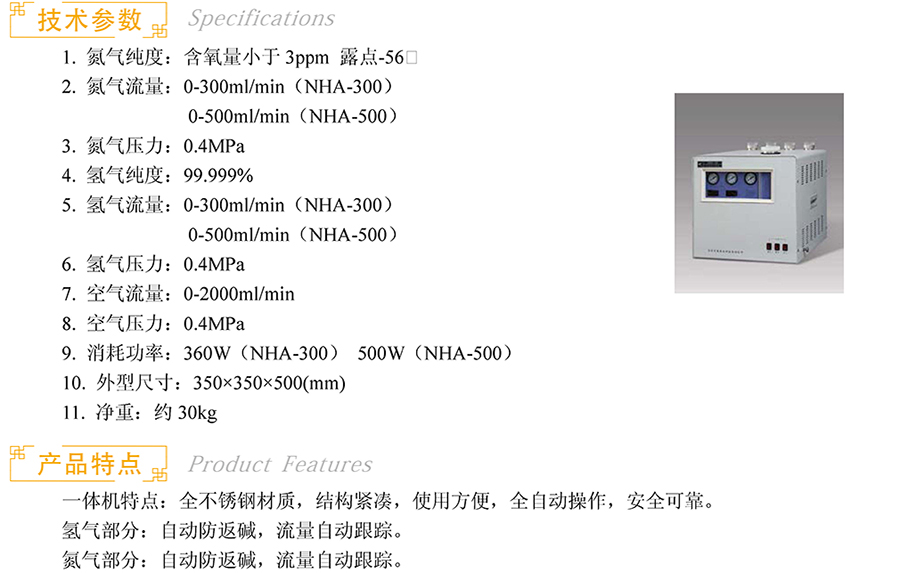 商品名称:北京中惠普 氮氢空一体机 NHA-500 自动放水 不锈钢过滤器 0-300ml/min
