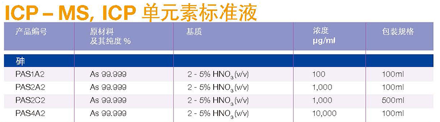 商品名称:爱尔兰Reagecon ICP-MS/ICP校准标准液 砷 商品编号:30000314 上架时间:2016/7/4 0:00:00