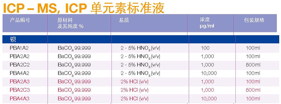 商品名称:爱尔兰Reagecon ICP-MS/ICP校准标准液 钡 商品编号:30000317 上架时间:2016/7/4 0:00:00