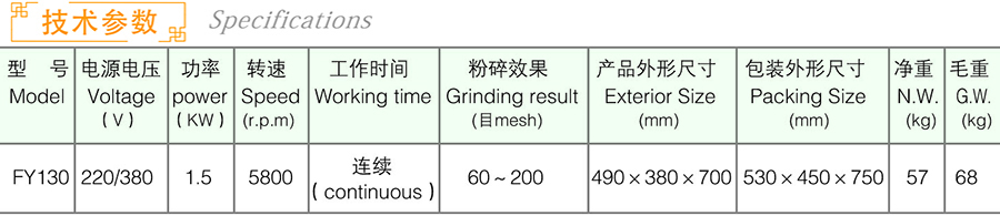 商品名称:菲斯福 中草药粉碎机 FY130 60-200目