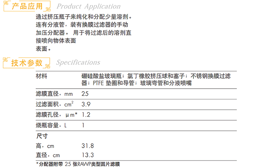 商品名称:密理博Millipore 溶剂过滤分配器 25mm 1L
